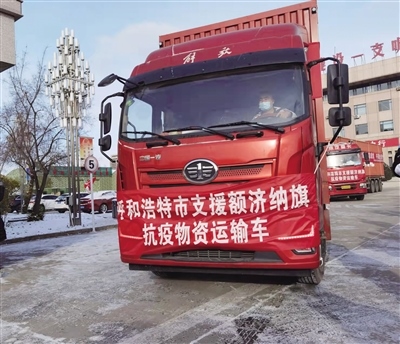 鑒于額濟納旗疫情防控任務(wù)依然艱巨、醫(yī)療物資用量仍然很大,呼和浩特市新冠病毒疫情聯(lián)防聯(lián)控暨新冠病毒疫情防控工作指揮部決定立即捐贈第一批價值300萬元的防疫物資。在呼和浩特市新冠病毒疫情聯(lián)防聯(lián)控暨新冠病毒疫情防控工作指揮部的統(tǒng)籌部署下,指揮部物資保障組成員單位市財政局、發(fā)改委、衛(wèi)健委、商務(wù)局、交通局、紅十字會全力以赴、齊心協(xié)力,愛心企業(yè)、金融機構(gòu)積極捐贈,呼和浩特警備區(qū)傾力相助,讓愛心“大禮包”如期發(fā)貨。在發(fā)車現(xiàn)場,中國銀行股份有限公司內(nèi)蒙古自治區(qū)分行辦公室主任葛華表示,面對疫情,中國銀行內(nèi)蒙古分行支援抗疫責(zé)無旁貸,重任在肩必須挺身,義無反顧地與全區(qū)人民站在一起,守望相助、同心戰(zhàn)“疫”、共克時艱,在積極做好疫情防控和金融服務(wù)的同時,主動擔(dān)當(dāng)責(zé)任,通過紅十字會向呼和浩特市、阿拉善盟、二連浩特市捐款近百萬元,為地方開展疫情防控盡一份綿薄之力。金宇生物技術(shù)股份有限公司黨委副書記張占福告訴記者:“疫情無情,人間有愛。作為動物疫苗生產(chǎn)企業(yè),能為我區(qū)抗擊疫情出一份力,奉獻一份愛,是企業(yè)應(yīng)盡的社會責(zé)任和義務(wù)?!痹诠部挂咔榈年P(guān)鍵時刻,內(nèi)蒙古顯鴻科技股份有限公司積極響應(yīng)市政府號召,在做好企業(yè)疫情防控的同時,第一時間組織抗疫物資,用實際行動踐行顯鴻科技“愛黨、愛國、愛企、愛家”情懷。短短幾天時間內(nèi),伊利、蒙牛、盛健、華訊等18家企業(yè)進行愛心捐贈,大家同心同德、同向同行,堅決助力自治區(qū)打贏這場疫情防控阻擊戰(zhàn)。