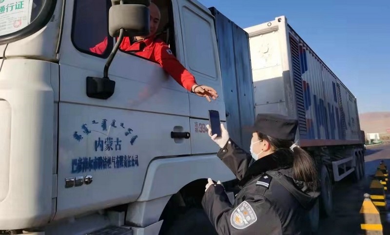 在巴彥淖爾市烏拉特中旗牧羊海疫情防控服務(wù)點(diǎn),工作人員正對(duì)來往的車輛人員進(jìn)行檢測(cè)、掃碼、詢問、登記……