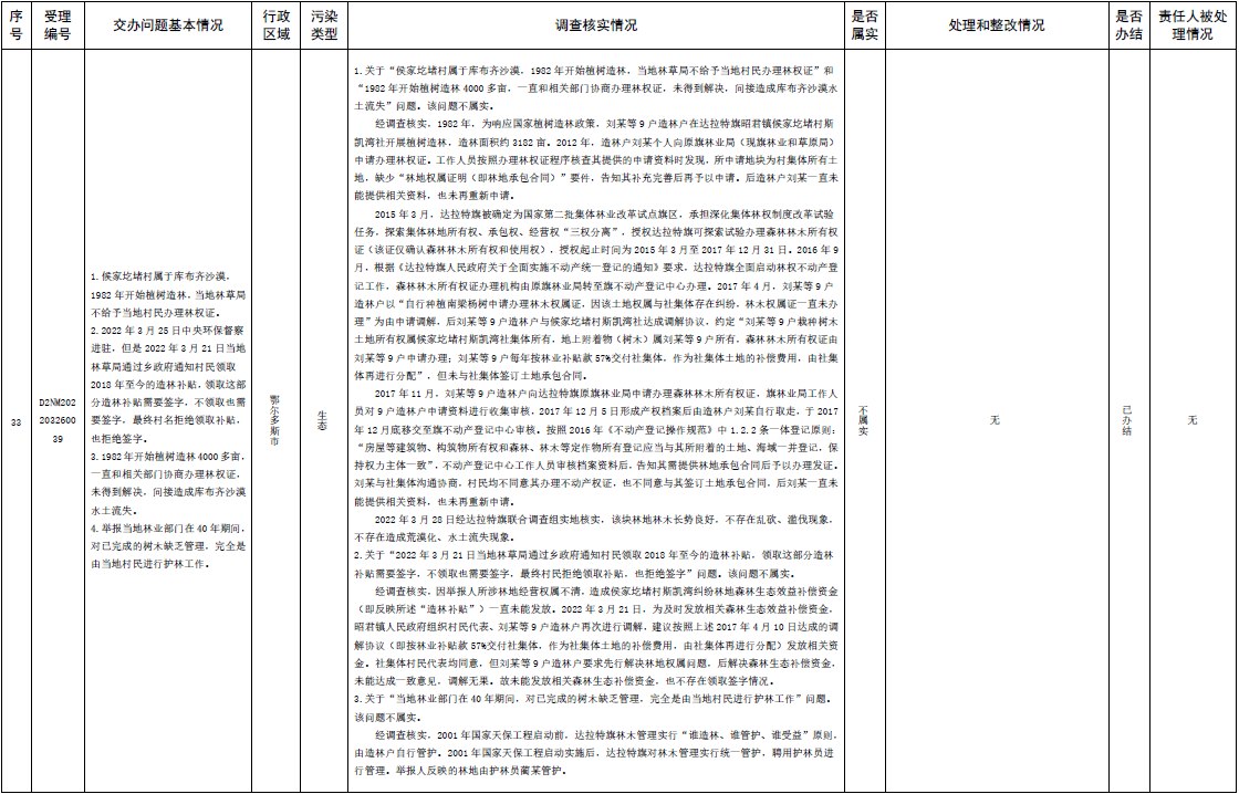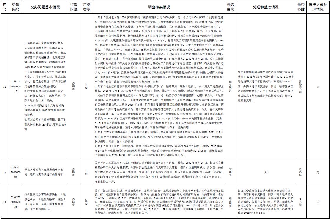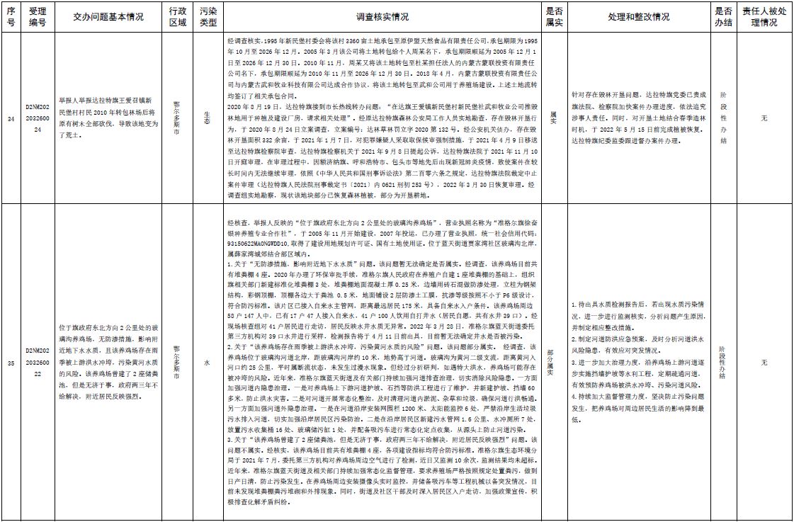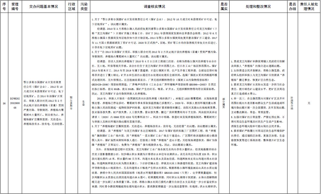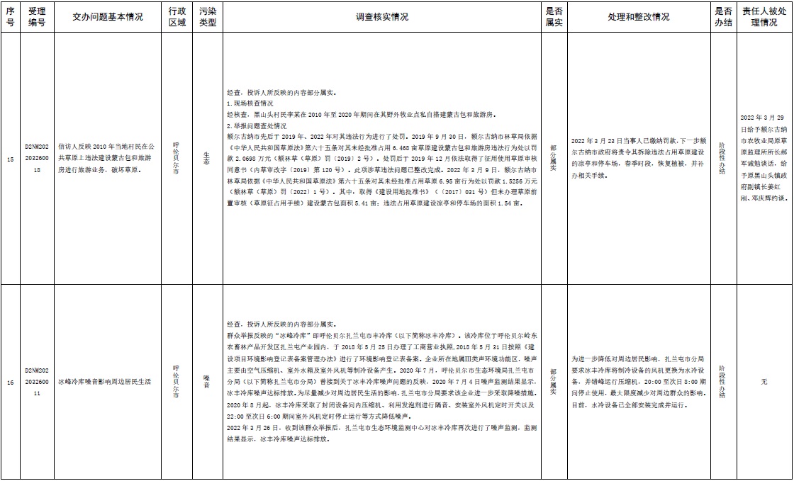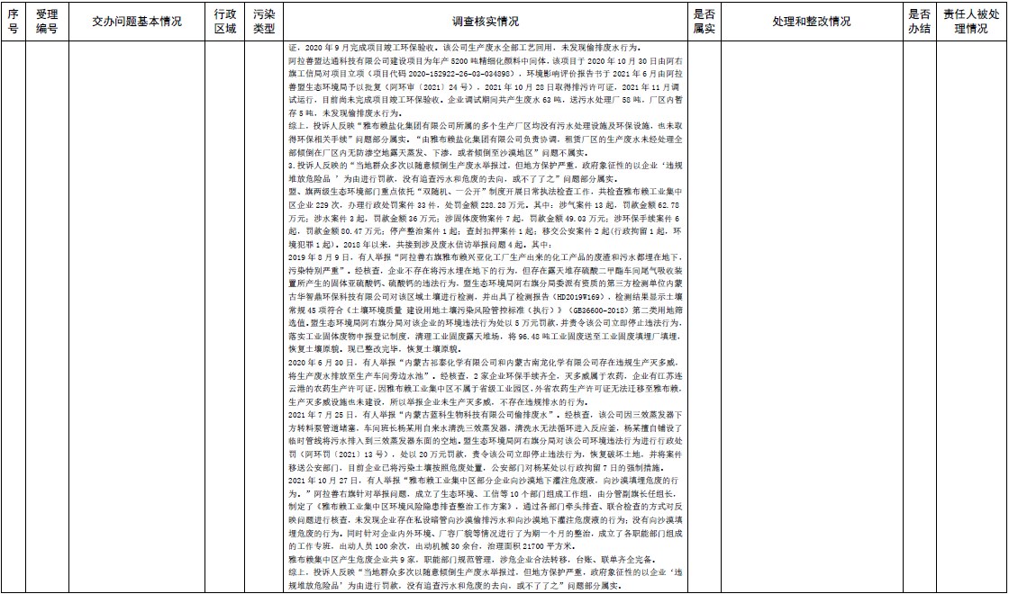 中央第三生態(tài)環(huán)境保護(hù)督察組交辦內(nèi)蒙古第二批42件群眾信訪舉報(bào)件辦理情況