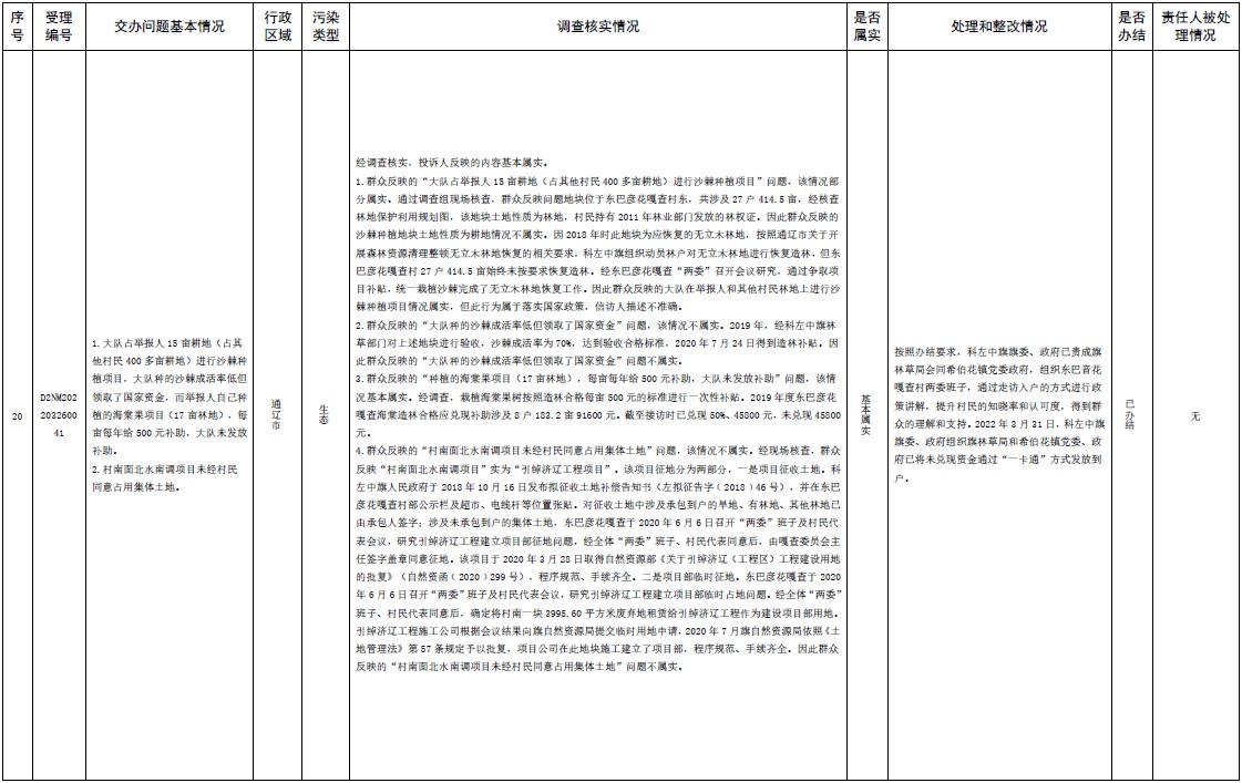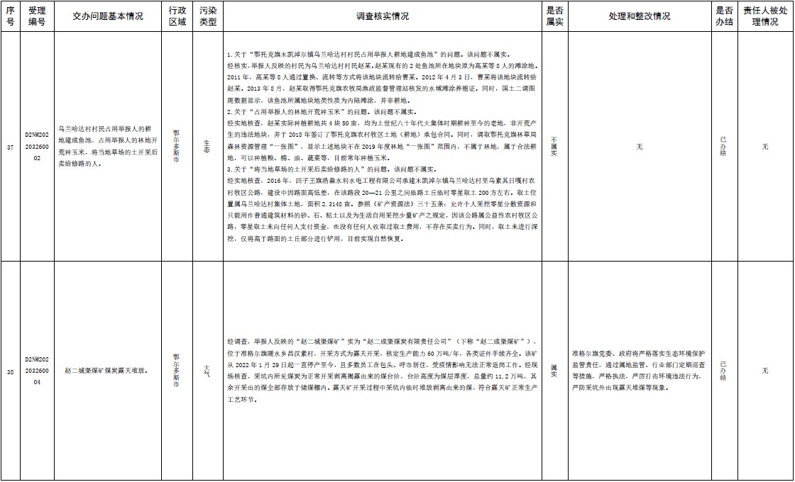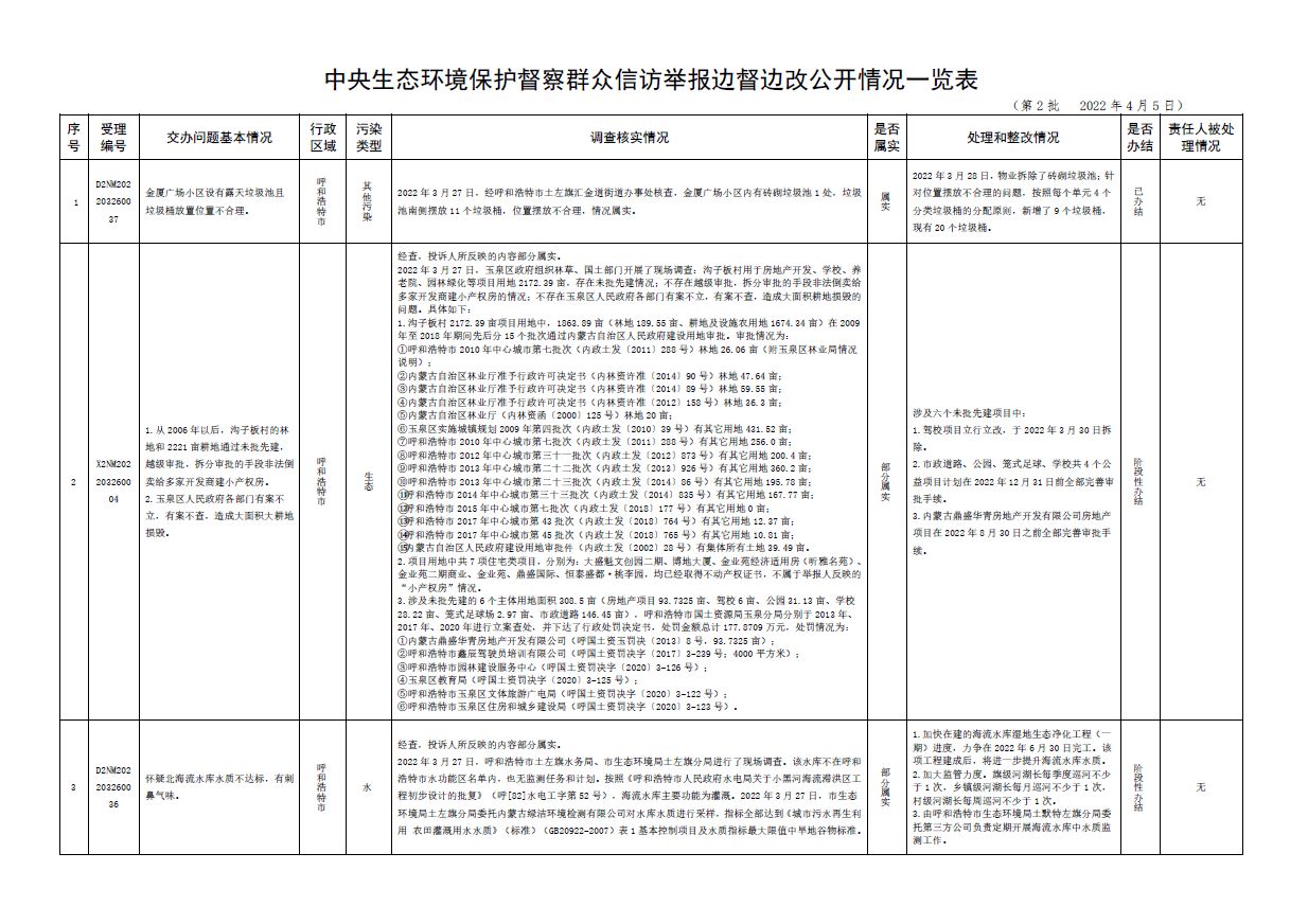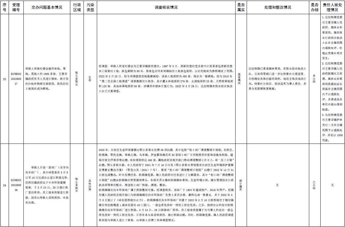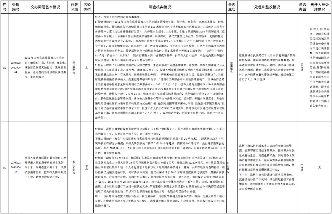 中央第三生態(tài)環(huán)境保護(hù)督察組交辦內(nèi)蒙古第二批42件群眾信訪舉報(bào)件辦理情況