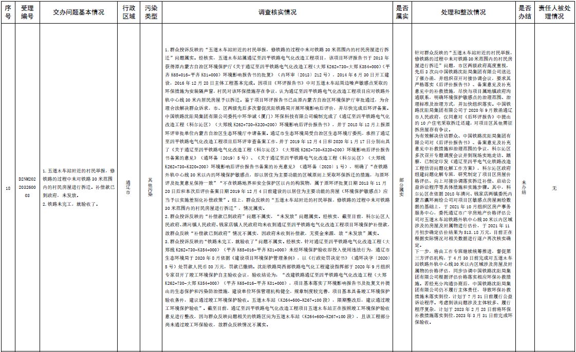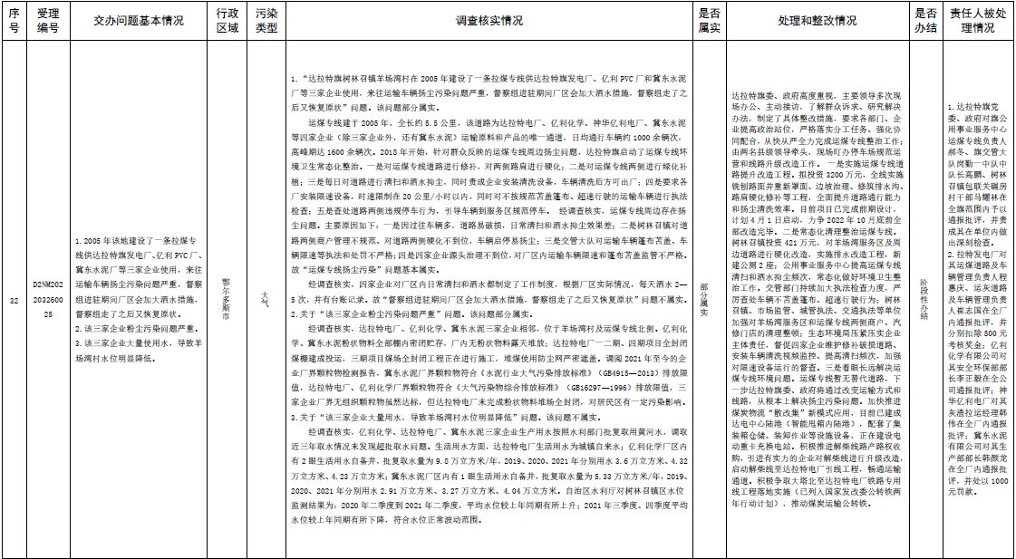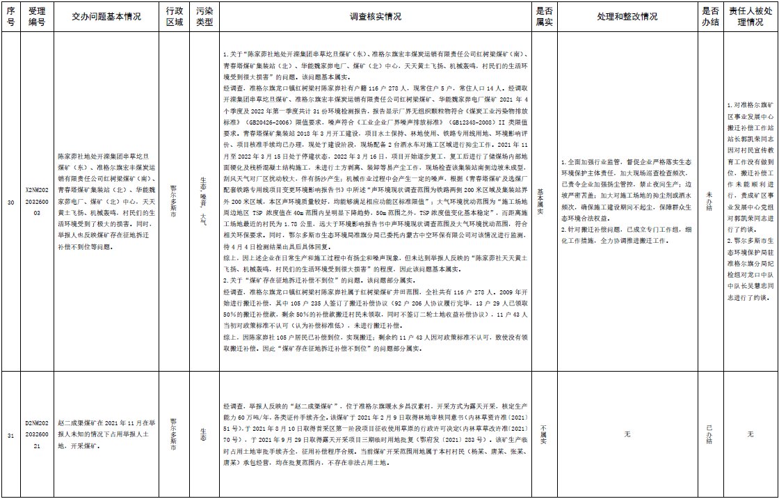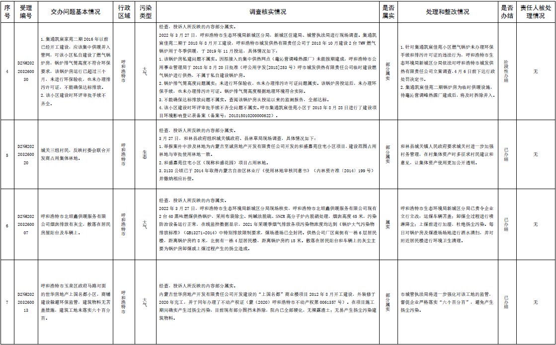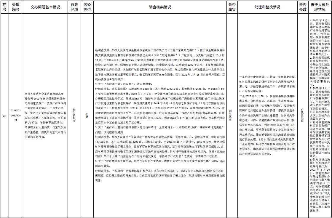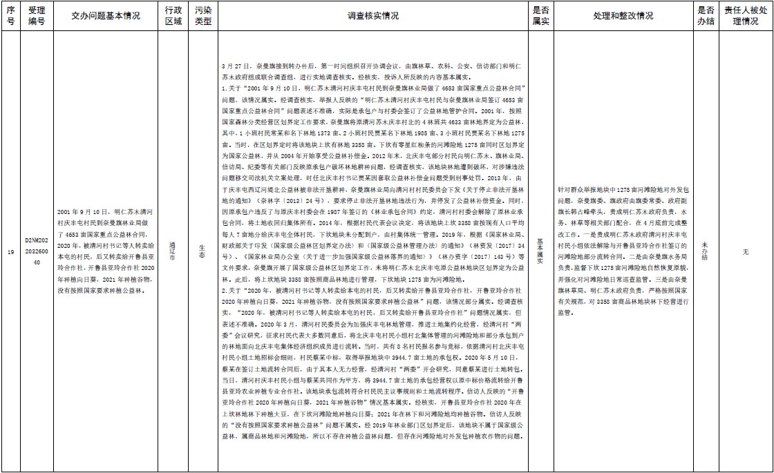 中央第三生態(tài)環(huán)境保護(hù)督察組交辦內(nèi)蒙古第二批42件群眾信訪舉報(bào)件辦理情況