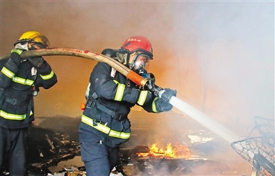 然而,與一般的火災現(xiàn)場不同,這次他們遭遇到前所未有的復雜情況——葡萄糖遇火即熔化成糖漿,飛濺的火苗噼里啪啦從各方擊來,刺鼻的氣體到處彌漫,令人窒息。四面是濃煙和熊熊烈火,水槍噴出的水瞬間變成水蒸氣,讓人眼前一片模糊,頭頂上掉落的鐵皮隨時會劃傷他們。