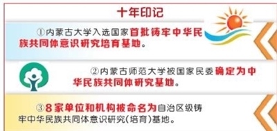 2020年2月,內蒙古大學入選國家首批鑄牢中華民族共同體意識研究培育基地;2021年3月,內蒙古師范大學被國家民委確定為中華民族共同體研究基地;2021年8月,8家單位和機構被命名為自治區(qū)級鑄牢中華民族共同體意識研究(培育)基地……內蒙古不斷加強中華民族共同體重大基礎性問題研究,持續(xù)推動鑄牢中華民族共同體意識與經(jīng)濟發(fā)展、鄉(xiāng)村振興、生態(tài)保護、基層治理等有機結合,深度融合。