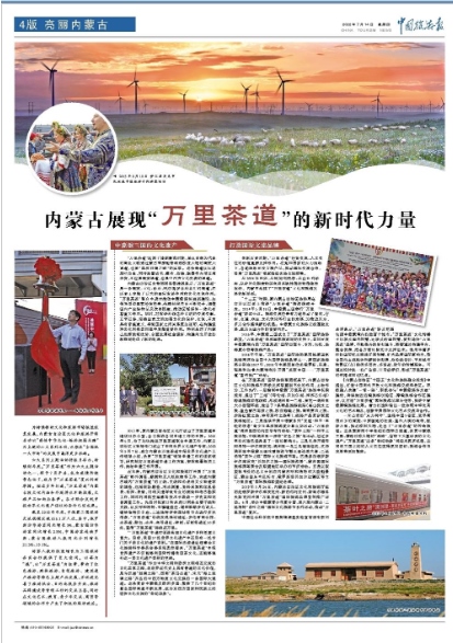 7月14日,《中國(guó)旅游報(bào)》4版刊發(fā)《內(nèi)蒙古展現(xiàn)“萬(wàn)里茶道”的新時(shí)代力量》,全文如下:
