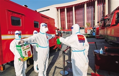 10月20日,在內(nèi)蒙古革命歷史博物館方艙醫(yī)院,呼和浩特市消防救援支隊消防員正在做個人消殺。本輪疫情發(fā)生以來,該支隊累計執(zhí)行消毒消殺任務(wù)300余次,完成室內(nèi)消殺近15萬平方米、消防安全線上檢查指導(dǎo)近500(家)次,為疫情防控貢獻消防力量。(內(nèi)蒙古日報社融媒體記者記者 懷特烏勒斯 通訊員 隆雪 攝)