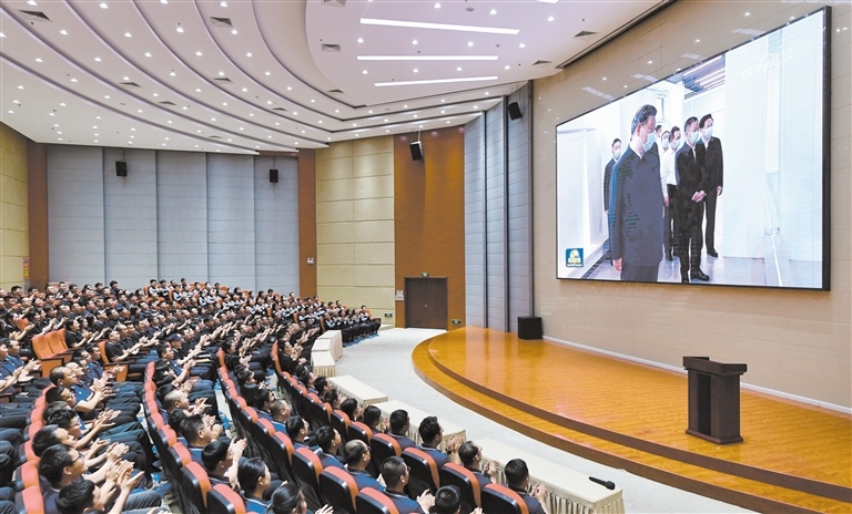 “重溫見到總書記的場景,我還是很激動?!碑斝侣劼?lián)播畫面出現(xiàn)習近平總書記和中環(huán)產(chǎn)業(yè)園員工親切交流的畫面時,大家難掩內心的激動紛紛鼓掌。職工董鵬飛興奮地說:“總書記很關心我們的新能源產(chǎn)業(yè),夸贊我們的企業(yè)和園區(qū)辦得不錯,這讓我和同事們倍感振奮和自豪。我是從最基層生產(chǎn)線上的一名操作工成長為現(xiàn)在的培訓師的,希望能培養(yǎng)更多更優(yōu)秀的專業(yè)技術人才,在綠色能源產(chǎn)業(yè)方面發(fā)光發(fā)熱?!?/p>