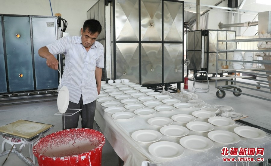 壓胚、印坯、曬坯、繪畫、上釉、燒制……經(jīng)過一道道嚴格的工序,溫潤細膩,精美絕倫,獨具特色的餐具、茶具、酒具以及各類藝術(shù)陳設(shè)陶瓷,呈現(xiàn)在人們面前。