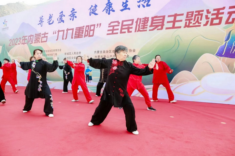 當(dāng)日,由內(nèi)蒙古自治區(qū)體育總會(huì)主辦、呼和浩特市體育局承辦的2023年內(nèi)蒙古“九九重陽(yáng)”全民健身主題活動(dòng)在國(guó)家登山健身步道舉行?,F(xiàn)場(chǎng)設(shè)置了3公里登高健身活動(dòng)和全民健身展演等活動(dòng)。