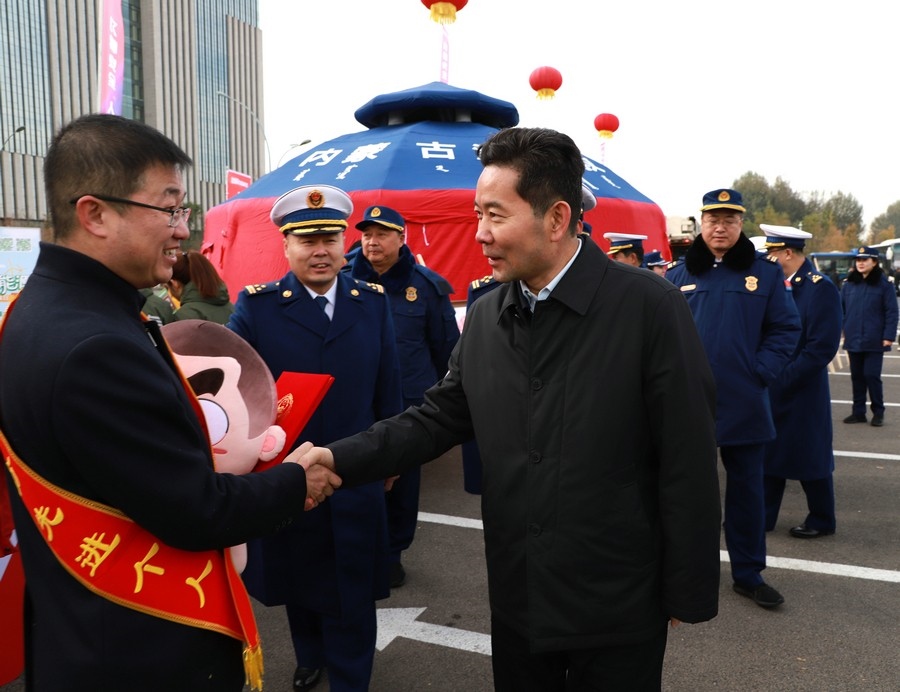 儀式上,內(nèi)蒙古自治區(qū)消防救援總隊總隊長李俊豐宣布“2023年度內(nèi)蒙古自治區(qū)消防宣傳月活動啟動”,消防主題公交車、共享單車、外賣車等“流動消防宣傳員”紛紛“上崗”,“消防+燃油”“消防+燃?xì)狻薄跋?用電”“消防+電動車”等主題宣傳集市火熱“開市”,2023年度內(nèi)蒙古自治區(qū)消防宣傳月活動正式拉開帷幕。