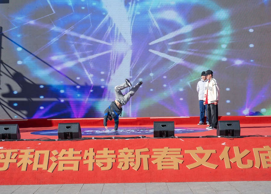 北疆新聞呼和浩特2月22日電(記者 楊凈毓 林則志)動(dòng)感的音樂,時(shí)尚炫酷的舞姿,100余名街舞愛好者齊聚內(nèi)蒙古呼和浩特大召?gòu)V場(chǎng),為市民、游客上演了一場(chǎng)精彩絕倫的街舞盛宴。