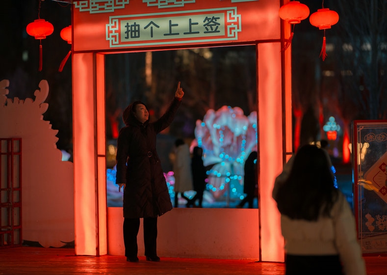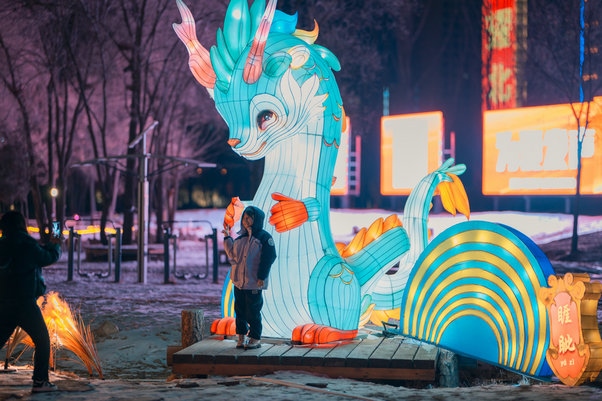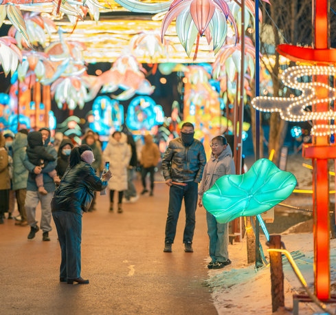 呼和浩特市民曹女士說:“今年49歲,正好本命年,已經(jīng)拍了很多照片和視頻了,這些龍的造型很喜人,更賞心悅目,家就住附近,沒事就來逛一逛,心情都會(huì)變得更好了,還能和孩子一起學(xué)習(xí)生僻字,了解中國傳統(tǒng)文化,很期待正月十五的燈謎,到時(shí)候還會(huì)來,和孩子一起猜燈謎、長知識(shí)?!?/p>