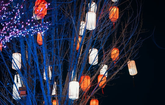 “鳳簫聲動(dòng),玉壺光轉(zhuǎn),一夜魚龍舞……”,宋代辛棄疾的《青玉案 元夕》描繪出了小草公園燈會(huì)熱鬧繁華的景象……掛滿枝頭的彩色燈籠,活靈活現(xiàn)的龍寶寶造型燈籠,薄如蟬翼的花燈籠,都寓意著風(fēng)調(diào)雨順,五谷豐登,吉祥幸福,更寄托著人們美好的愿景。