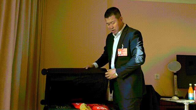 “這是我們?yōu)跆m察布市卓資縣的傳統(tǒng)名食卓資熏雞,這是我們自產(chǎn)的兩款亞麻籽油,它們都是我們當(dāng)?shù)赜刑厣霓r(nóng)畜產(chǎn)品,更是讓老百姓增收致富的產(chǎn)品。烏蘭察布有著豐富的資源,歡迎大家到烏蘭察布走一走、看一看。”薛志龍熱情地介紹起家鄉(xiāng)的特產(chǎn),并向全國人大代表發(fā)出邀請(qǐng)。