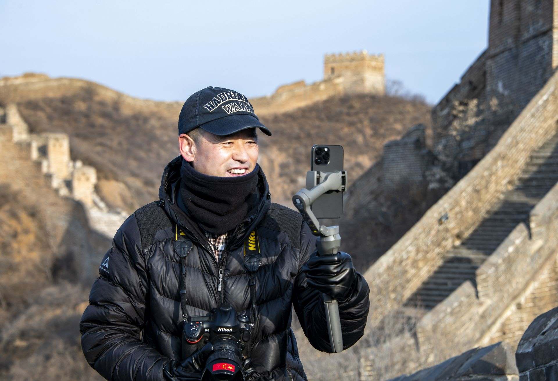 3月2日,“長城老郭”登上長城進(jìn)行直播。紀(jì)正權(quán)攝
