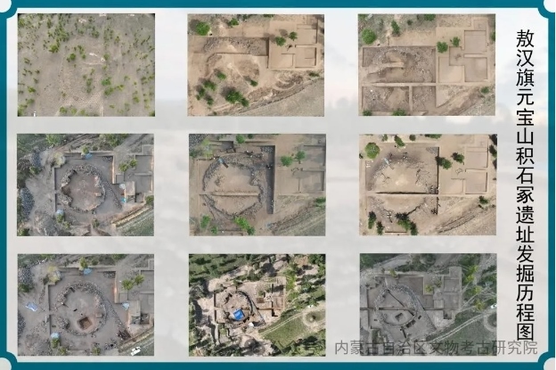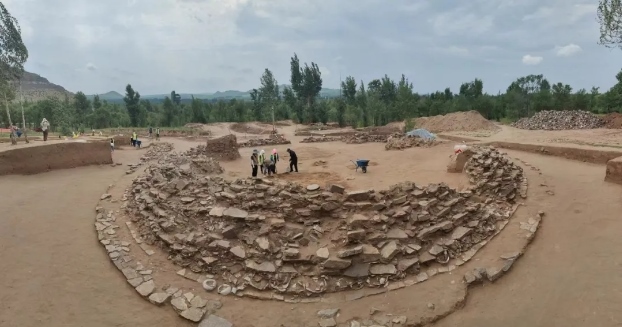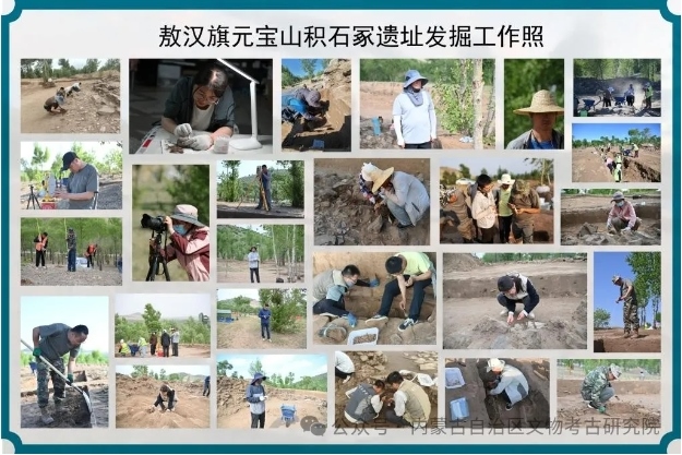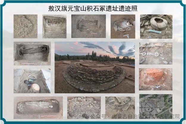 2023年11月,位于赤峰市敖漢旗下洼鎮(zhèn)元寶山積石冢被盜,當地文物管理部門上報后,2024年初內蒙古自治區(qū)文物考古研究院經自治區(qū)文物局批準,以搶救性考古發(fā)掘向國家文物局申請并得以批準。4月底,組隊對該地點及周邊開展調查并進行了勘探。5月正式啟動發(fā)掘,截止目前已明確該地點為一處集墓葬建筑與祭祀建筑一體的紅山文化遺存。也是目前所知內蒙古自治區(qū)唯一的一處南方北圓、南壇北冢的紅山文化晚期建筑遺存。