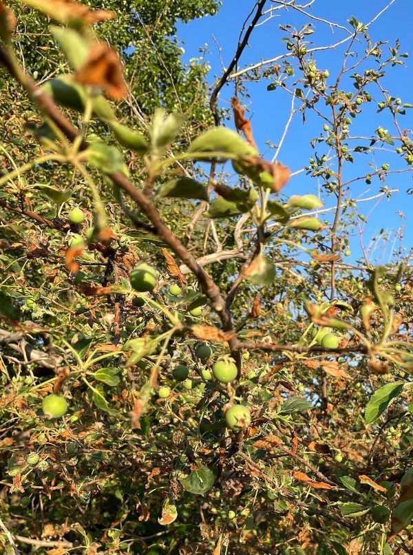 ??馮耀華當年帶頭修起的大壩已廢棄,壩下無人料理的果樹卻還年年結果。今年又有不少綠色小沙果掛在枝頭。新華每日電訊記者王京雪攝