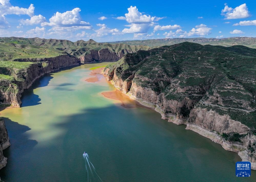 ??這是8月12日拍攝的老牛灣北側(cè)的一處黃河峽谷(無(wú)人機(jī)照片)。