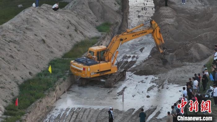 圖為工程機械清理西遼河河道。格日勒圖 攝
