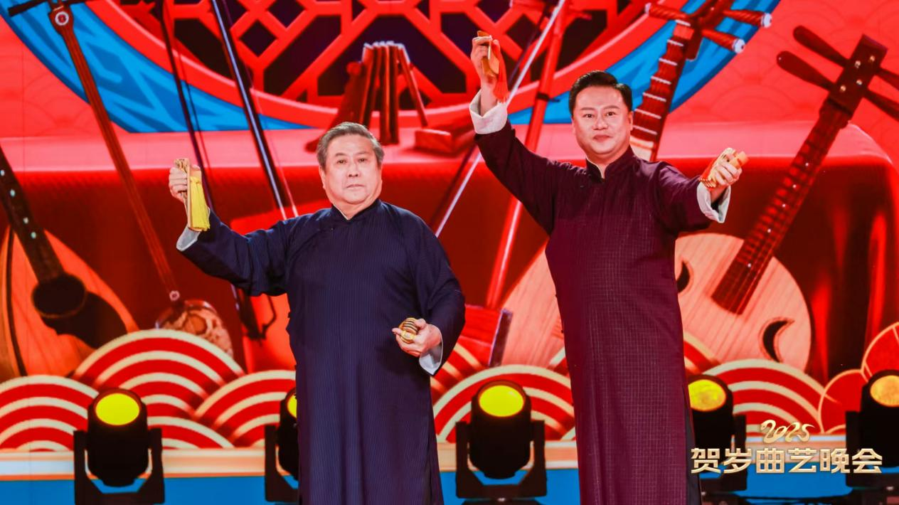 馮鞏、李志強(qiáng)的相聲《蛇年大吉》以成語接龍送祝福,嗨翻全場(chǎng);張志寬師徒的快板書《立井架》展現(xiàn)李派快板的獨(dú)特魅力;盛小云、高博文的評(píng)彈和馮欣蕊、夏炎的京韻大鼓,盡顯傳統(tǒng)曲藝的優(yōu)雅韻味。