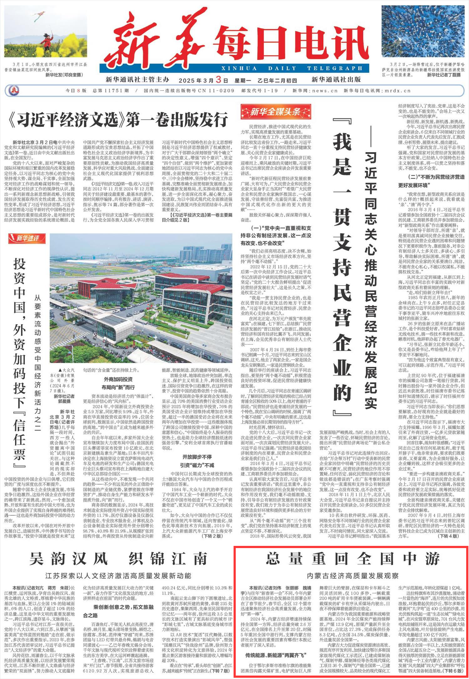 2025年3月3日,《新華每日電訊》第1版刊發(fā)題為《總量重回全國(guó)中游 內(nèi)蒙古經(jīng)濟(jì)高質(zhì)量發(fā)展觀(guān)察》的文章,報(bào)道了與往年“新春第一會(huì)”不同,今年內(nèi)蒙古全區(qū)推動(dòng)經(jīng)濟(jì)社會(huì)發(fā)展動(dòng)員部署會(huì)開(kāi)在了春節(jié)前夕。春節(jié)后,全區(qū)12個(gè)盟市迅速聚焦經(jīng)濟(jì)社會(huì)高質(zhì)量發(fā)展,全力跑好“第一棒”。2024年,內(nèi)蒙古經(jīng)濟(jì)增速持續(xù)保持全國(guó)第一方陣,經(jīng)濟(jì)總量突破2.6萬(wàn)億元,在全國(guó)排名上升至第20位,時(shí)隔5年重回全國(guó)中游行列。