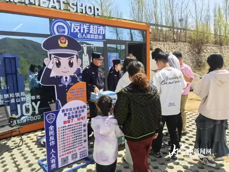 隨著氣溫回暖,呼和浩特市公安局賽罕區(qū)分局黃合少派出所轄區(qū)內(nèi)的石人灣露營基地迎來客流高峰。黃合少派出所因地制宜探索反詐新路徑,精心籌備打造的特色“反詐超市”在石人灣露營基地正式開業(yè)。