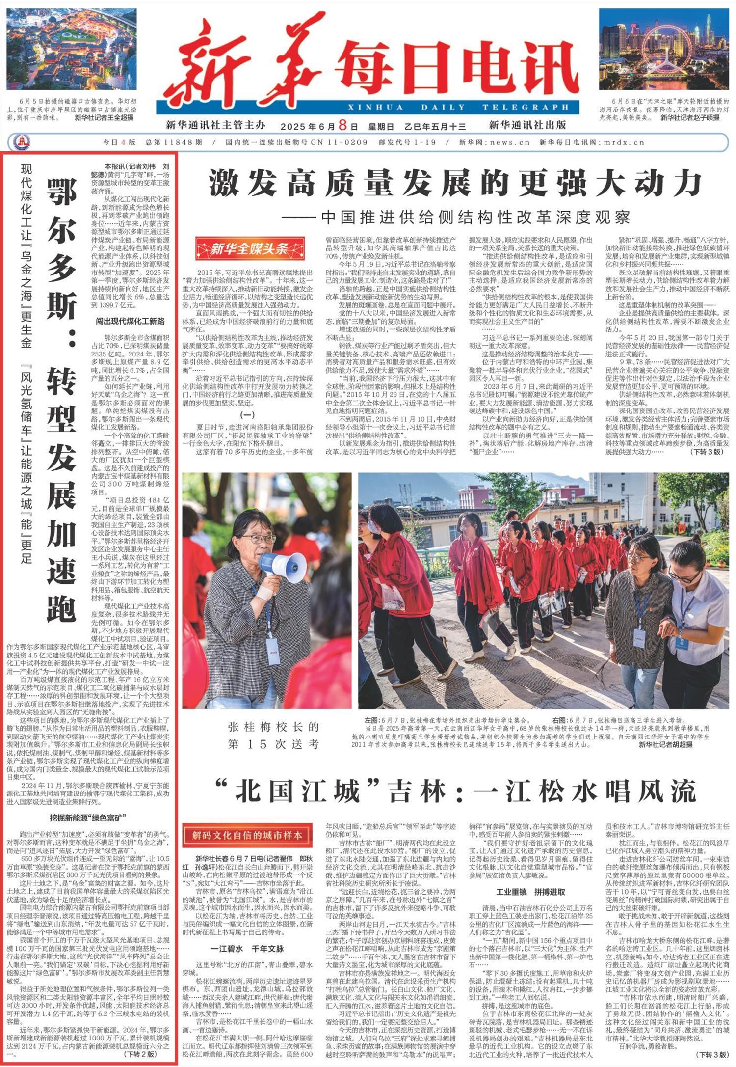 2025年6月8日,《新華每日電訊》第1版刊發(fā)題為《鄂爾多斯:轉(zhuǎn)型發(fā)展加速跑》一文,報(bào)道了近年來,內(nèi)蒙古資源型城市鄂爾多斯正通過延伸煤炭產(chǎn)業(yè)鏈、布局新能源產(chǎn)業(yè),構(gòu)建起特色鮮明的現(xiàn)代能源產(chǎn)業(yè)體系,以科技創(chuàng)新、產(chǎn)業(yè)升級(jí)跑出資源型城市轉(zhuǎn)型“加速度”。