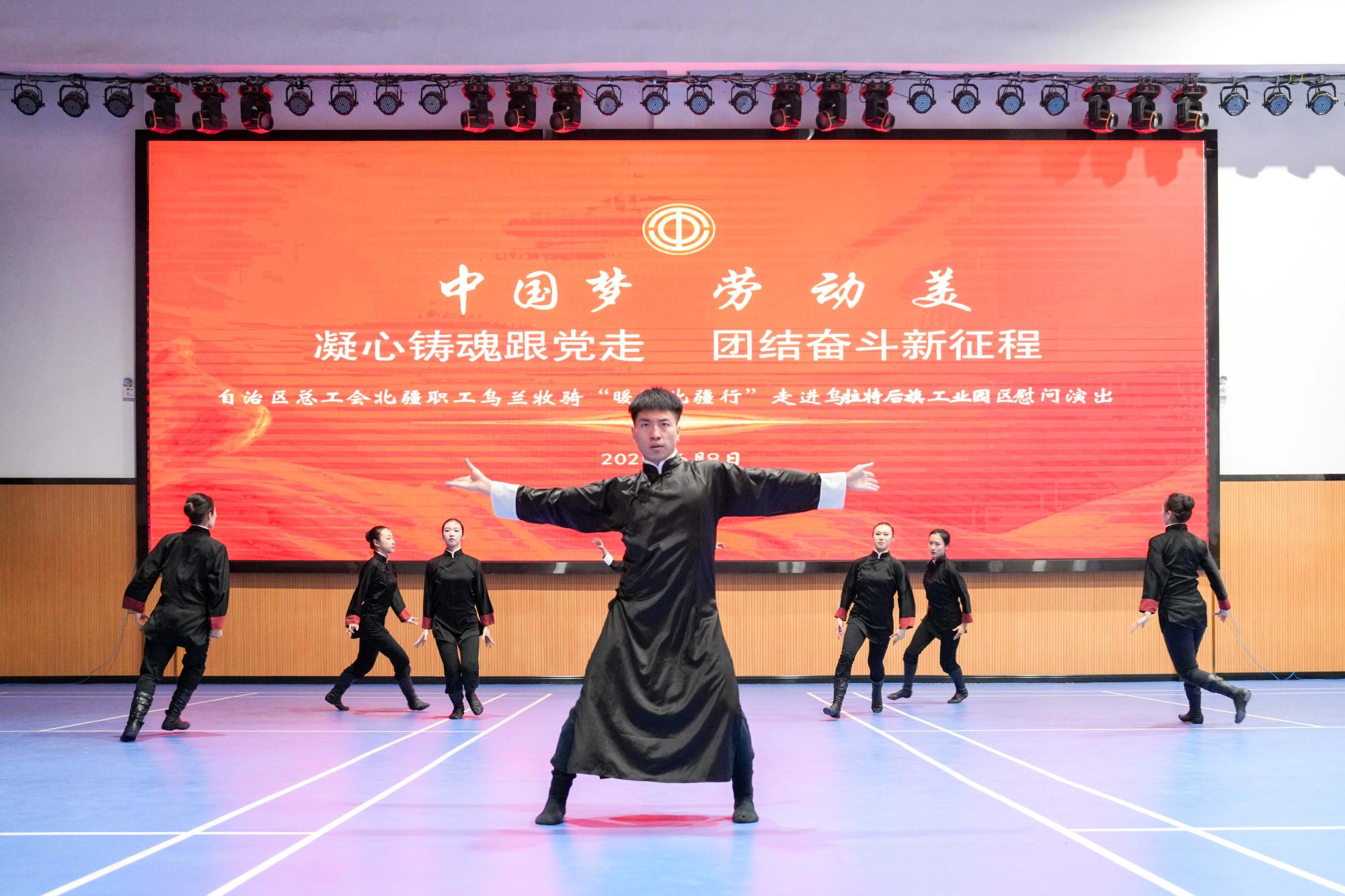 內(nèi)蒙古藝術(shù)學(xué)院烏蘭牧騎藝術(shù)團(tuán)不僅走進(jìn)部隊哨所,還深入烏拉特草原深處。他們驅(qū)車抵達(dá)烏拉特后旗,在工業(yè)園區(qū)進(jìn)行慰問演出,將精心編排的歌舞、器樂等節(jié)目送到邊疆建設(shè)一線的群眾面前。