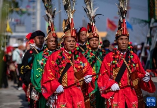 當(dāng)日,云南省德宏傣族景頗族自治州瑞麗市2023年目瑙縱歌節(jié)在位于中緬邊境的勐秀鄉(xiāng)戶(hù)瓦山寨開(kāi)幕。