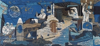 “大國重器”亮點紛呈,脫貧攻堅成就舉世矚目,這些時代新象都在展覽中得到體現(xiàn)。例如,張輝君油畫《蛟龍入海》、沙永匯版畫《北斗》等作品,折射出我國科技自主創(chuàng)新能力不斷提升??鬃现袊嫛陡瓯跒泛蛣⒃浦袊嫛睹利愢l(xiāng)村》,分別借助植樹造林的人物群像塑造、新農(nóng)村景觀的宏闊描繪,展現(xiàn)了彪炳史冊的人間奇跡。
