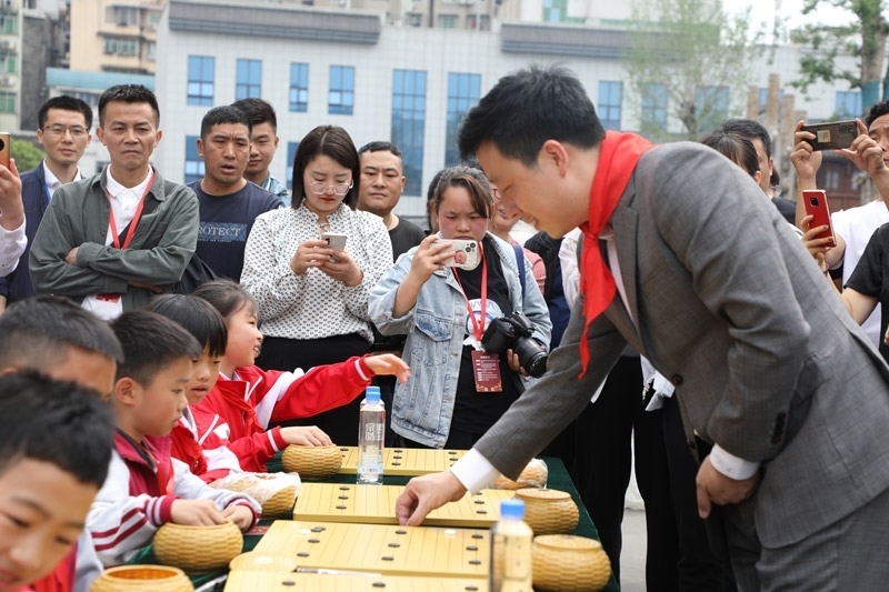 人民網(wǎng)銅仁5月15日電 (記者李乃妍)5月14日,第十屆中國女子圍棋甲級(jí)聯(lián)賽希望教室捐贈(zèng)儀式和指導(dǎo)棋活動(dòng)在銅仁市梵凈書院進(jìn)行,中國圍棋協(xié)會(huì)主席林建超等出席活動(dòng)并發(fā)言。世界冠軍古力、孔杰、馬曉春等與當(dāng)?shù)匦∑逋轮笇?dǎo)棋。