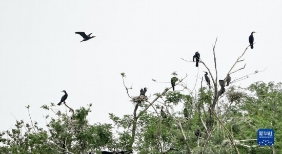 密云水庫“鳥島”上育雛的鸕鶿(5月31日攝)。