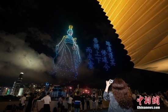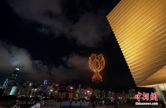 6月22日晚間,“紫荊花之夜”無(wú)人機(jī)燈光創(chuàng)意秀在香港故宮文化博物館畔的海面上空舉行,2000架無(wú)人機(jī)演繹多個(gè)與“端午節(jié)”相關(guān)的圖案,點(diǎn)亮香港夜空。