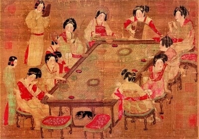 隨著茶在各個(gè)階層中的逐漸流行,到了隋唐時(shí)期,人們更加注重飲茶的儀式感。唐代陸羽所著《茶經(jīng)》的問世,更是將茶文化推向空前繁榮的發(fā)展時(shí)期,煎茶成為當(dāng)時(shí)主要的飲茶方式。從《唐人宮樂圖》這幅經(jīng)典茶畫中可以看到雍容華貴的仕女和精美華麗的宮廷家具,富麗的設(shè)色更是將唐代審美展現(xiàn)得淋漓盡致。畫中,宮女們分坐于雕飾精美的月牙凳上,圍著寬大的長案或在吹篥,或彈琵琶,案上擺放著精致的茶盞,人們沉浸在美妙的樂音中享受著煎茶的美好時(shí)光。宮廷茶宴成為唐代宮廷休閑與文化生活的一部分,亦是唐代茶事活動(dòng)的一個(gè)縮影,相應(yīng)的茶家具種類和形式也逐漸豐富起來。此時(shí)用于飲茶的長案與月牙凳可以滿足多人共同參與,足見飲茶已經(jīng)具有了一定的社交屬性。