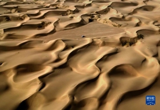 這是9月7日在新疆喀什地區(qū)麥蓋提縣N39°沙漠旅游景區(qū)拍攝的沙漠風(fēng)光(無人機照片)。