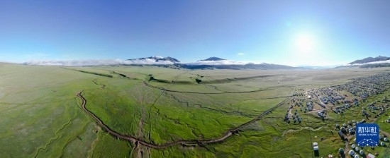 巴音布魯克草原景色(7月7日攝,無人機全景照片)。