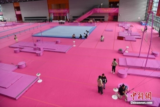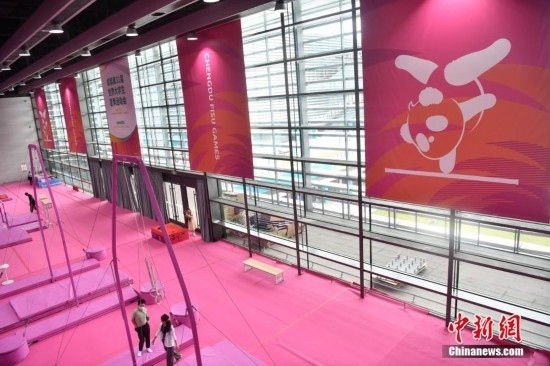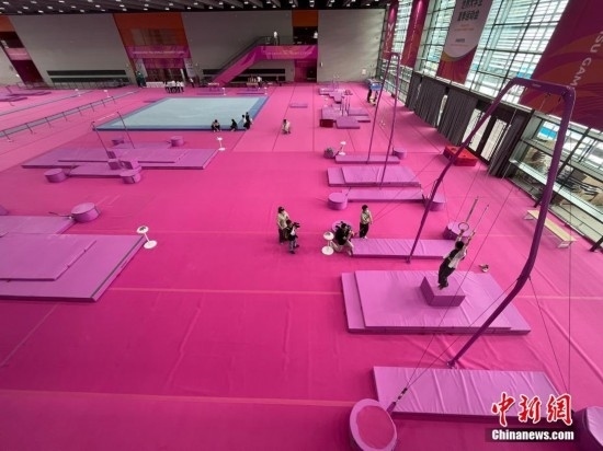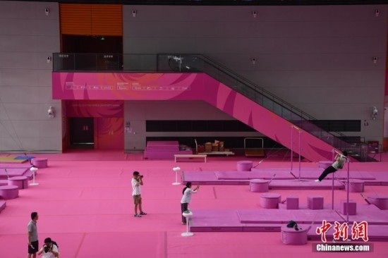 打卡成都大運(yùn)會(huì)里的“粉色系”體操比賽訓(xùn)練場