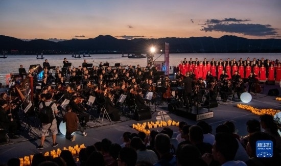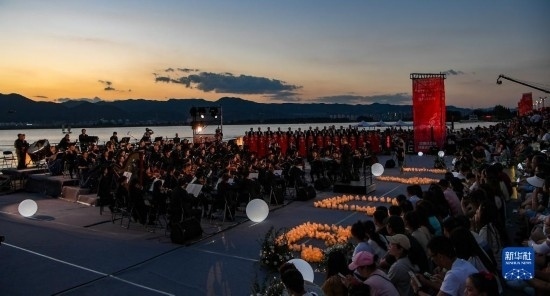 伴著晚霞,第七屆聶耳音樂周昆明分會場開幕式在滇池畔舉行(7月17日攝)。