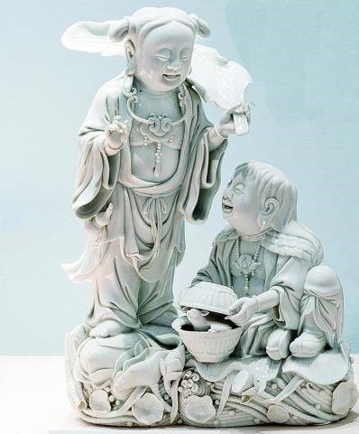 展覽第一單元“泥根玉雪元無染”,從“君子如蓮”的角度去解讀儒家文化中的蓮荷意象。先秦時期,蓮花成為儒家的“比德”之花,象征士大夫的芳潔之志,是“花中君子”人格意象的起點。屈原以“蓮花”寄托高潔志向,使其具有人格特征。漢代人們視蓮花為祥瑞。唐代文人賦予“白蓮”清凈不染的品性,使其“君子之義”進一步顯現(xiàn)。宋代大儒周敦頤一生為官廉潔奉公,施澤于民,并以名篇《愛蓮說》定格了蓮花“中通外直”“亭亭凈植”的清廉君子意象和文人節(jié)操。第二單元“蓮花影里數(shù)樓臺”,從“花開見佛”“以蓮喻道”去闡釋佛道,以蓮花之潔凈比喻出于世間而清凈無染的品質(zhì),賦予蓮荷光明、美好、高尚和圣潔的意象。第三單元“映日荷花別樣紅”,從“和和美美”“福壽永年”“荷風(fēng)滿堂”的角度展示了世俗文化影響下與蓮有關(guān)的吉祥圖形和詞語。明清時期,民間因“荷”“和”諧音,以及蓮荷文化蘊含的“以和為貴”的理念,將蓮荷作為愛情幸福、婚姻美滿、多子昌盛、生活富裕、生生不息等涵義的吉祥物,和諧、和睦、和合的“蓮荷意象”得以確立。蓮荷在中國園林中更是“點睛之筆”,賞荷、詠詩、品酒,是園林生活中的盛事,也是寄托情志的重要方式,展現(xiàn)出人與人、人與自然和諧共生的美好畫卷。