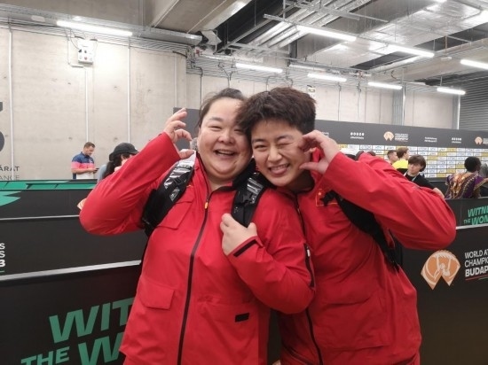 賽場(chǎng)內(nèi)外,年齡相差15歲的兩人臉上總是掛著同款笑容,也總是形影不離。趙杰說(shuō)她總是粘著崢姐,而王崢則說(shuō)出門在外總是趙杰照顧她更多。