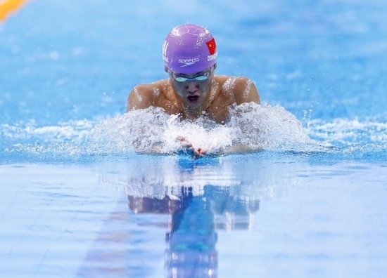 11月1日,南京市選手董志豪在比賽中,他獲得男子100米蛙泳公開(kāi)組冠軍。當(dāng)日,第一屆全國(guó)學(xué)生(青年)運(yùn)動(dòng)會(huì)游泳項(xiàng)目比賽在廣西南寧開(kāi)賽。新華社記者 胡星宇 攝