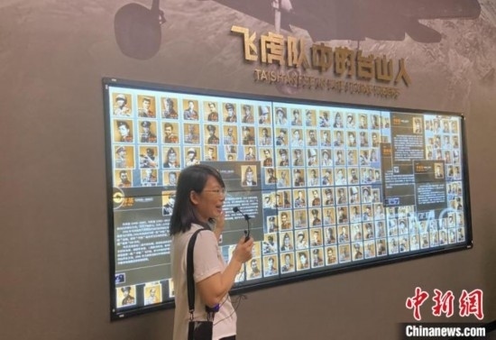 中國僑都華僑華人博物館內(nèi),講解員正在介紹飛虎隊(duì)中祖籍廣東臺(tái)山的隊(duì)員。畢松杰 攝