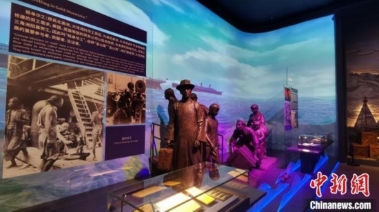 中國僑都華僑華人博物館展示當(dāng)年“契約華工”出洋工作的場景和資料。江門市委宣傳部 供圖