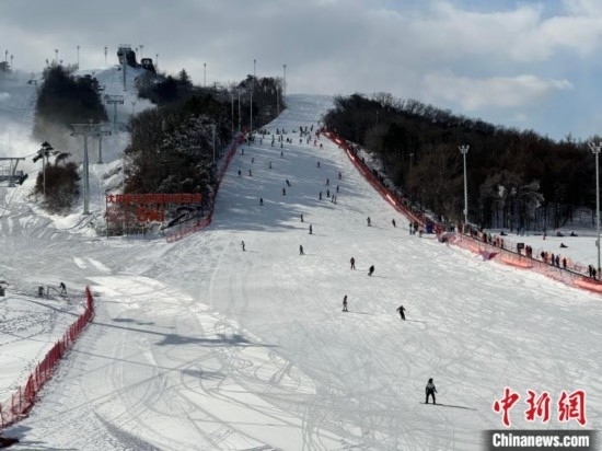 來(lái)自各地的游客在東北亞國(guó)際滑雪場(chǎng)體驗(yàn)滑雪。記者韓宏攝