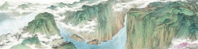 油畫《天門中斷楚江開》,作者宛少軍。