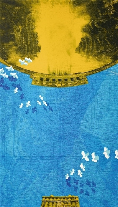 版畫《蓄勢(shì)——破譯雅礱密碼》,作者賀思恩。