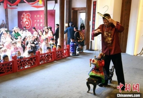 提線木偶表演吸引觀眾。 中新網(wǎng)記者劉可耕攝