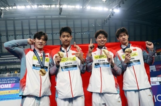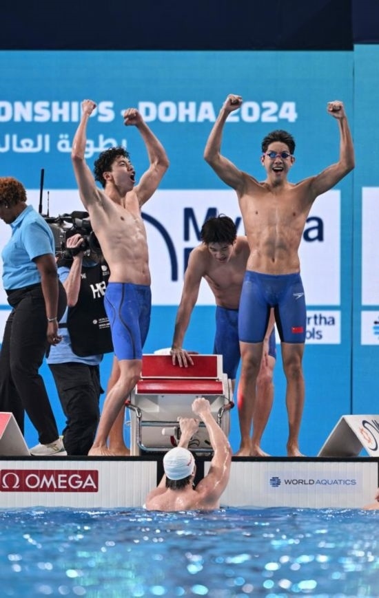 11日,中國農(nóng)歷甲辰龍年大年初二,多哈世界游泳錦標賽游泳項目第一個比賽日,潘展樂和隊友季新杰、張展碩、王浩宇在男子4×100米自由泳接力決賽中以3分11秒08贏得金牌,為中國男子游泳創(chuàng)造歷史!中國游泳此前還從未獲得過世錦賽或者奧運會的男子接力冠軍。