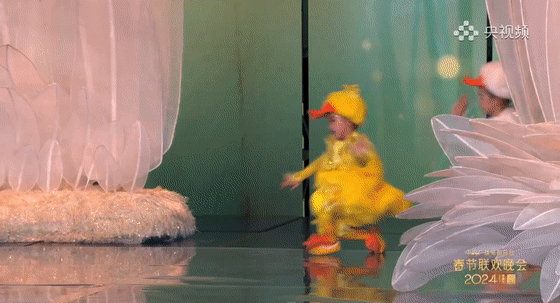 每年春晚都少不了兒童節(jié)目,導(dǎo)演組堅(jiān)持兒童舞蹈要從孩子的眼睛看世界,必須符合孩子身體的表達(dá)。這些“小天鵝們”正是來自駱賓王的家鄉(xiāng)義烏,他們用自己的理解展現(xiàn)了《詠鵝》中“白鵝戲水圖”的獨(dú)特韻味。“跪游”的經(jīng)典動作把“紅掌撥清波”刻畫得惟妙惟肖,“翹屁股”更是萌翻了觀眾,左搖右擺的“矮子步”還是來自孩子們的鬼馬“創(chuàng)作”,整個(gè)舞蹈充滿了童趣純真。