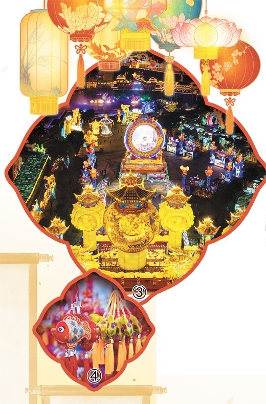 | 圖③:在四川省自貢市中華彩燈大世界舉辦的第三十屆自貢國際恐龍燈會亮燈。新華社記者 沈伯韓攝 圖④:在山東省濟寧市嘉祥縣,富有創(chuàng)意的裝飾掛件營造出濃郁的喜慶氛圍。姚 燁攝(人民視覺) |