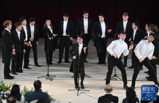 3月21日,耶魯胡同貓合唱團在音樂會上演出。新華社記者 任超 攝
